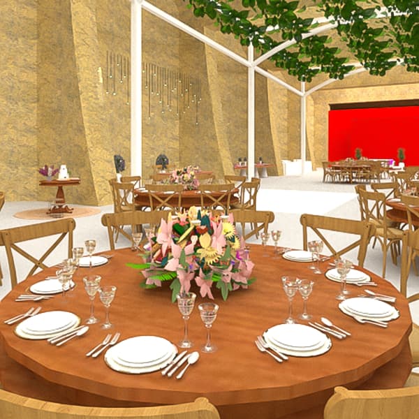 O espaço é entendido como matéria de projeto. A análise de ambientes, a leitura de espaços existentes e a sua adaptação a diferentes eventos são trabalhadas em conjunto com elementos como iluminação, materiais, mobiliário e decoração. A organização de layouts e a representação simples de espaços, através de SketchUp ou plantas anotadas, permite testar soluções e antecipar decisões, aproximando o projeto da sua aplicação real.